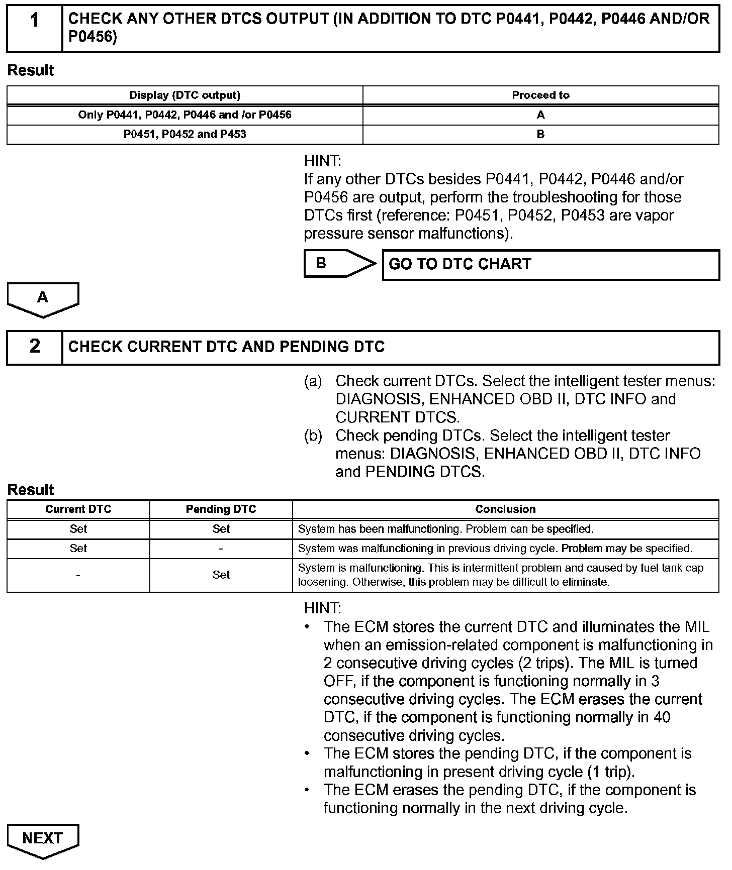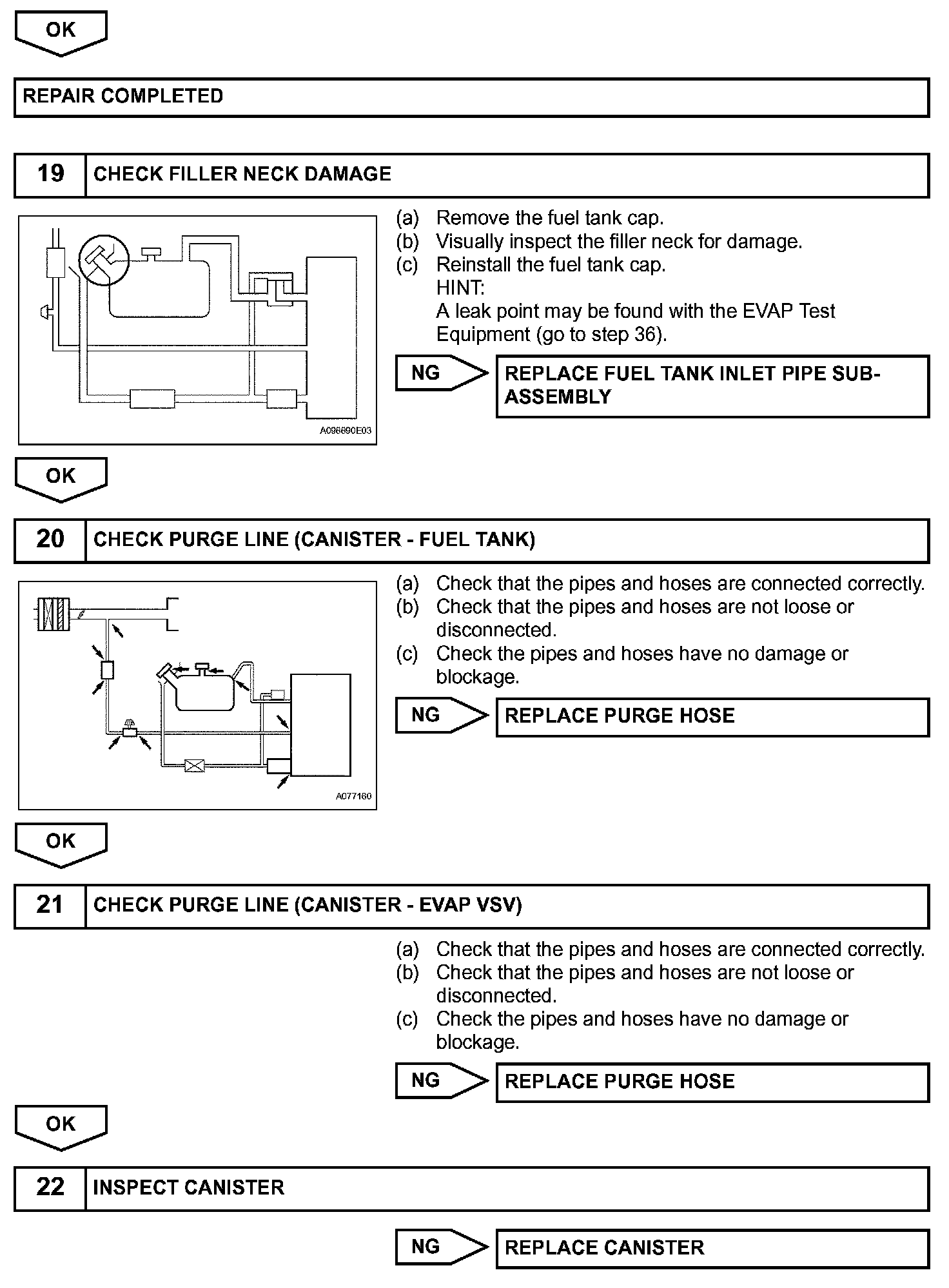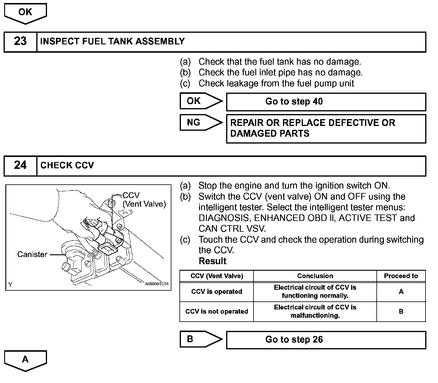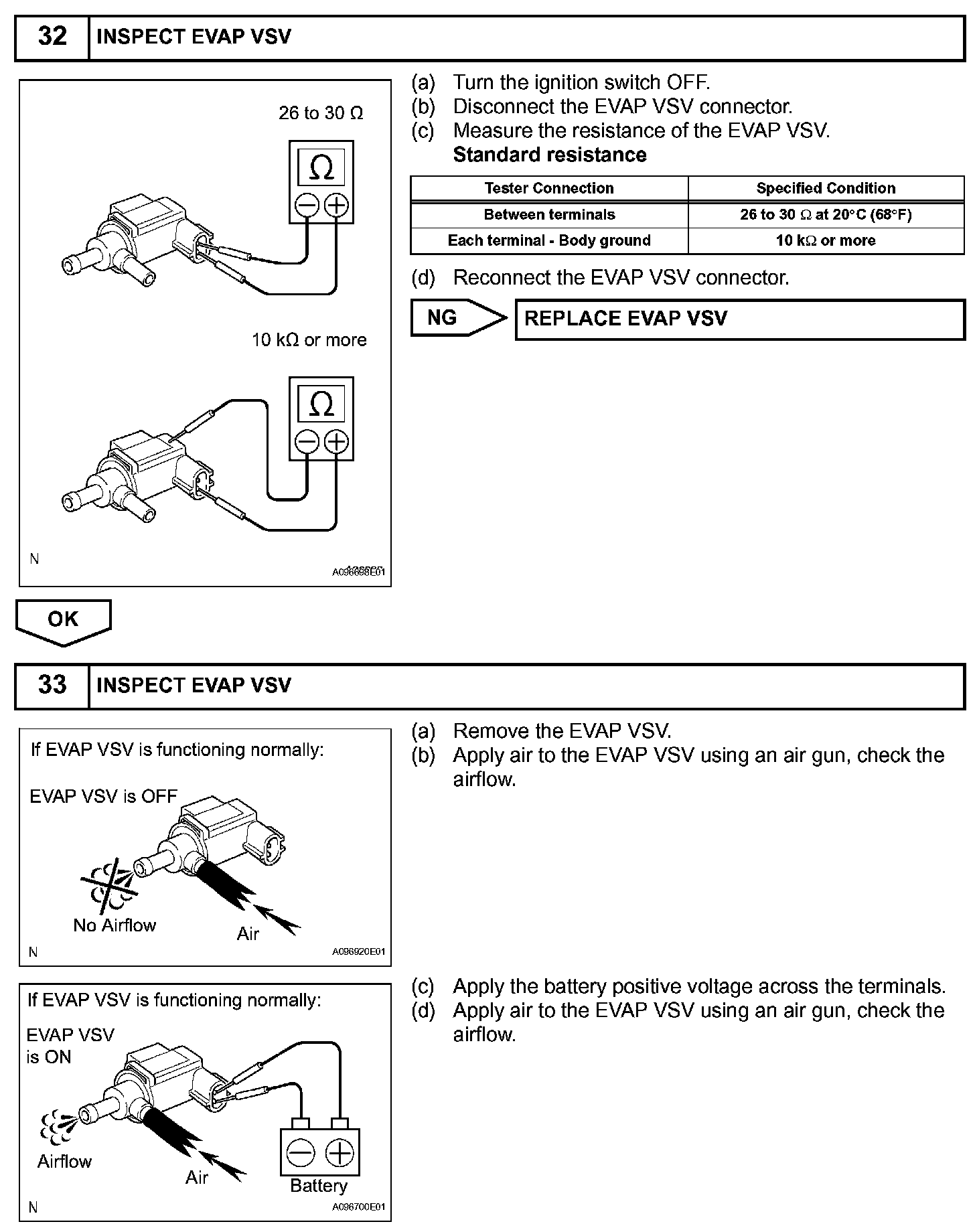 The EVAP monitor's purpose is to check for EVAP leaks and EVAP VSV and CCV malfunctions. The monitor performs the check by first introducing the intake manifold's negative pressure (vacuum) to the EVAP system. Then, the monitor records change in the EVAP system's pressure levels. The monitor runs when the following conditions are met: