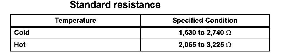 ON-VEHICLE INSPECTIONNOTE: "Cold" and "Hot" in this section mean the temperature of the coils themselves. "Cold" is from -10 degree C (14 degree F) to 50 degree C (122 degree F) and "Hot" is from 50 degree C (122 degree F) to 100 degree C (212 degree F).