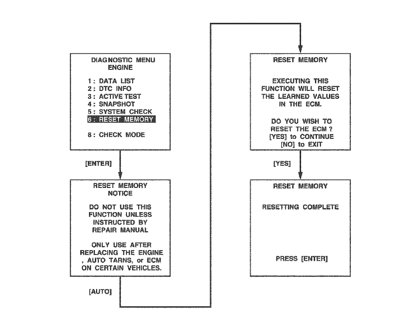 CAUTION: After performing the RESET MEMORY, be sure to perform the ROAD TEST described earlier. Road Test