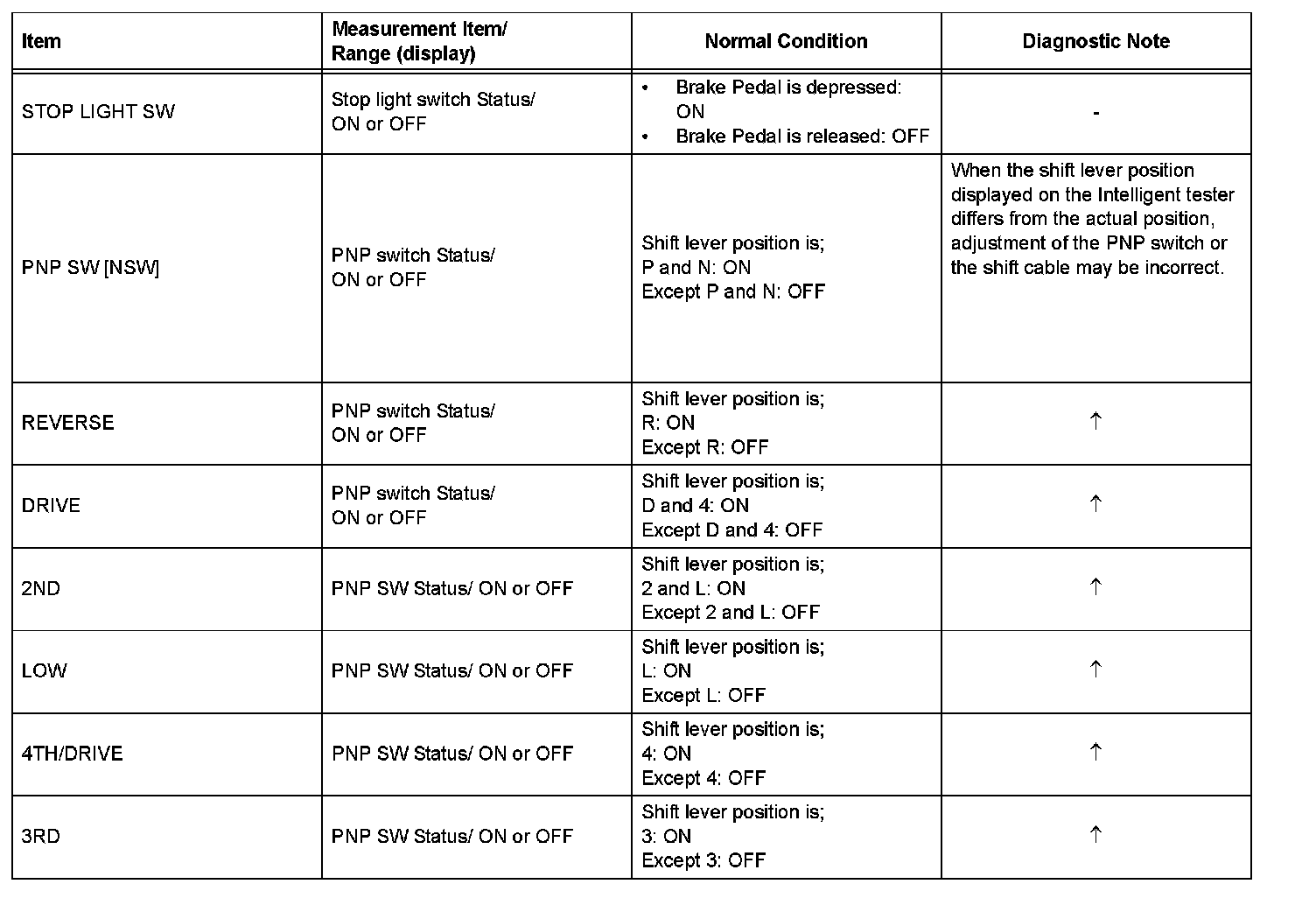 HINT: According to the DATA LIST displayed by the intelligent tester, you can read the value of the switch sensor, actuator and so on without parts removal. Reading the DATA LIST as the first step of troubleshooting is one method to shorten labor time.