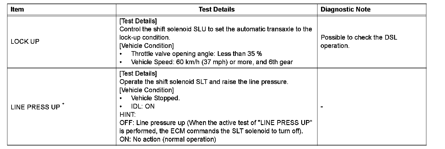 *: "LINE PRESS UP" in the ACTIVE TEST is performed to check the line pressure changes by connecting the SST to the automatic transaxle, which is used in the HYDRAULIC TEST as well.