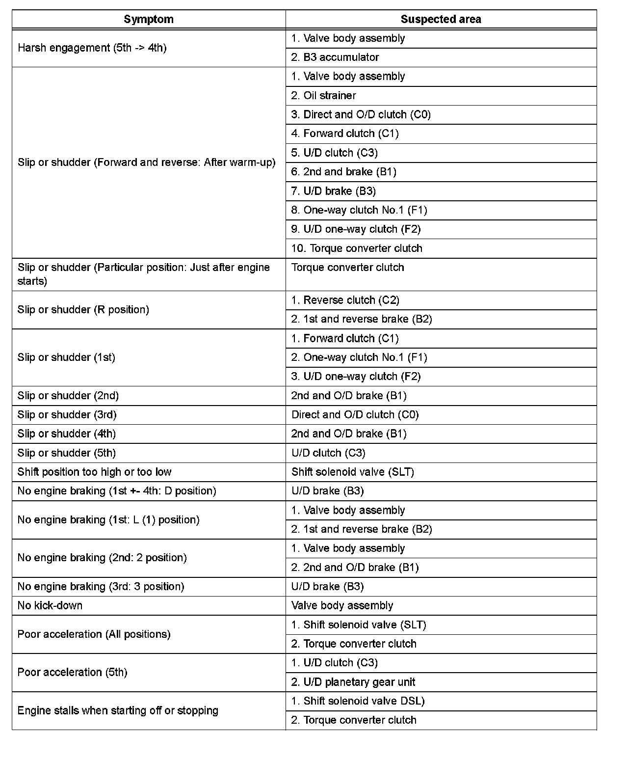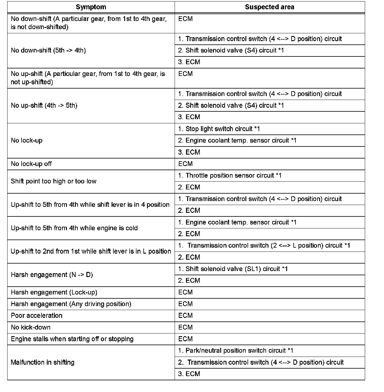 Refer to the table when the trouble cause is considered to be electrical the instruction Proceed to next circuit inspection shown on matrix chart is given in the flow chart of each circuit, proceed to the circuit with the next highest number in the table to continue the check. If the trouble still occurs even though there are no abnormalities in any of the other circuits, check and replace the ECM.