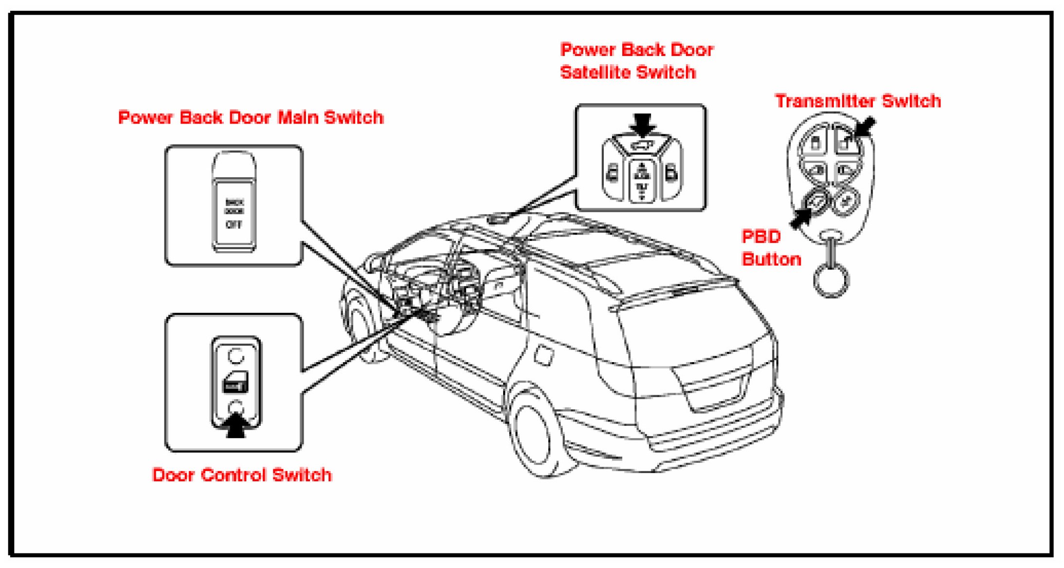 A. Unlock the power back door using the transmitter switch or the door control switch.