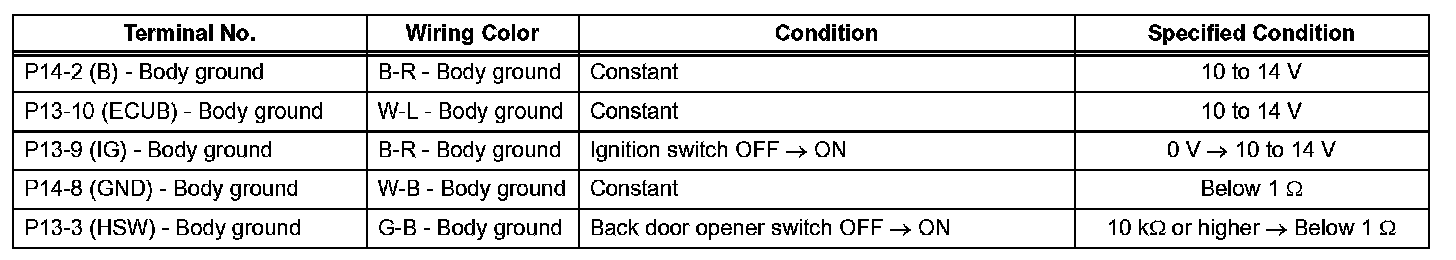 TERMINALS OF ECU1. CHECK POWER BACK DOOR ECU