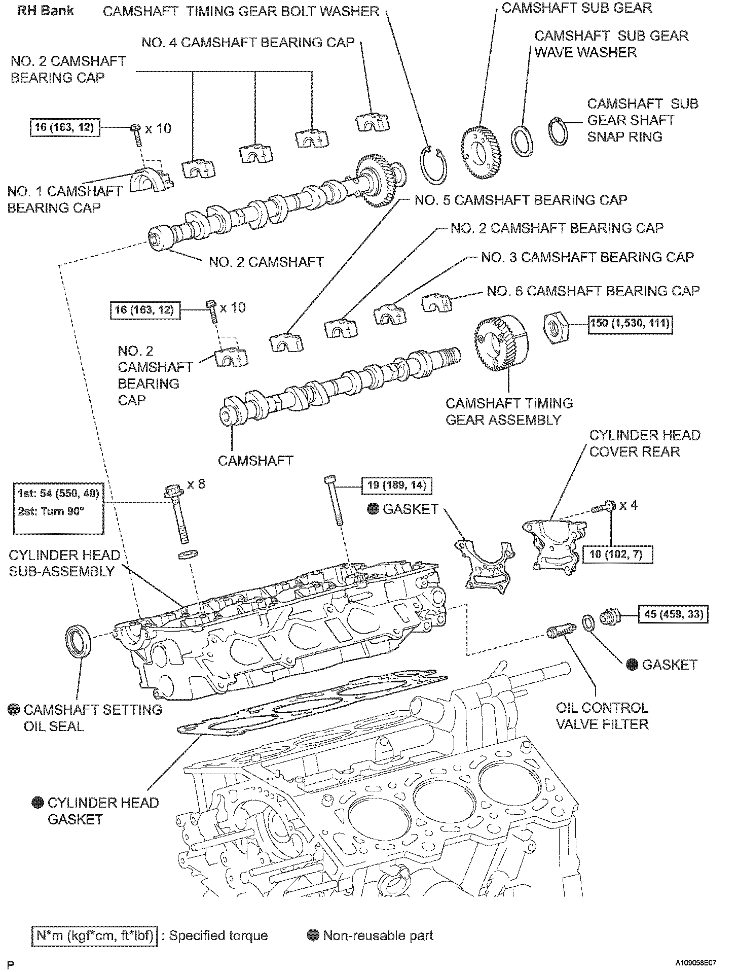 Retighten the cylinder head bolts by 90° in the same sequence shown in the illustration.