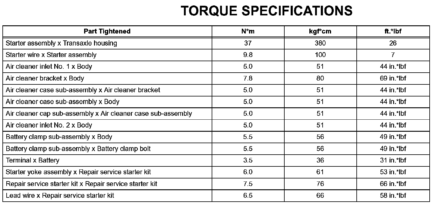 Starting-Torque Specifications: