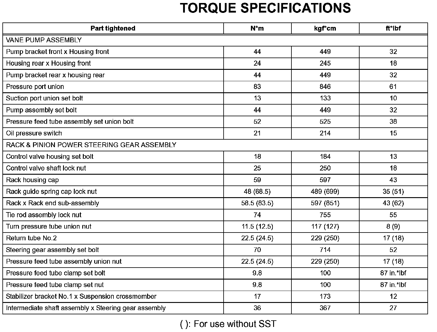 Power Steering-Torque Specifications: