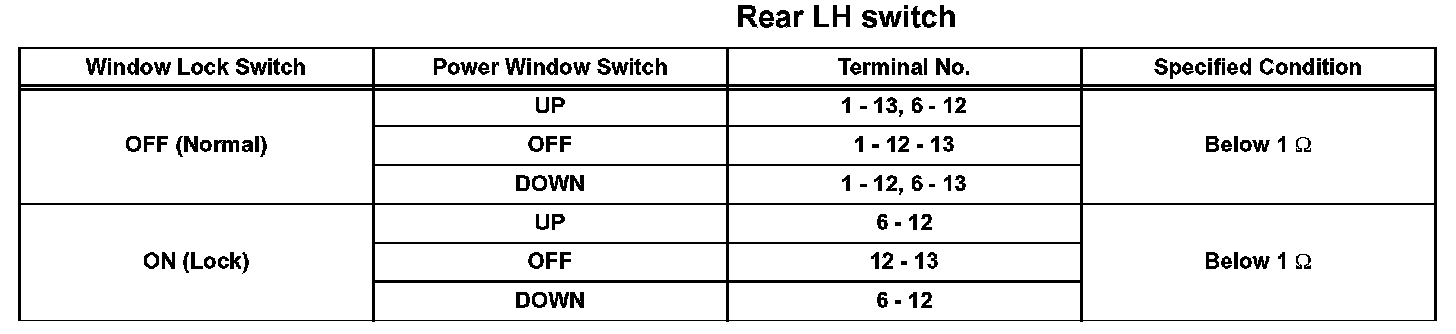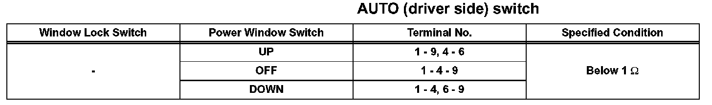 INSPECT POWER WINDOW REGULATOR MASTER SWITCH ASSEMBLY