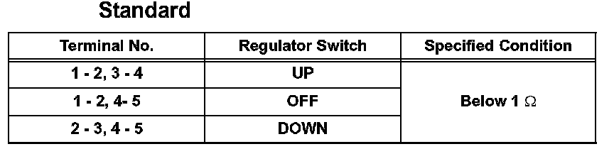 If the result is not as specified, replace the switch assembly.