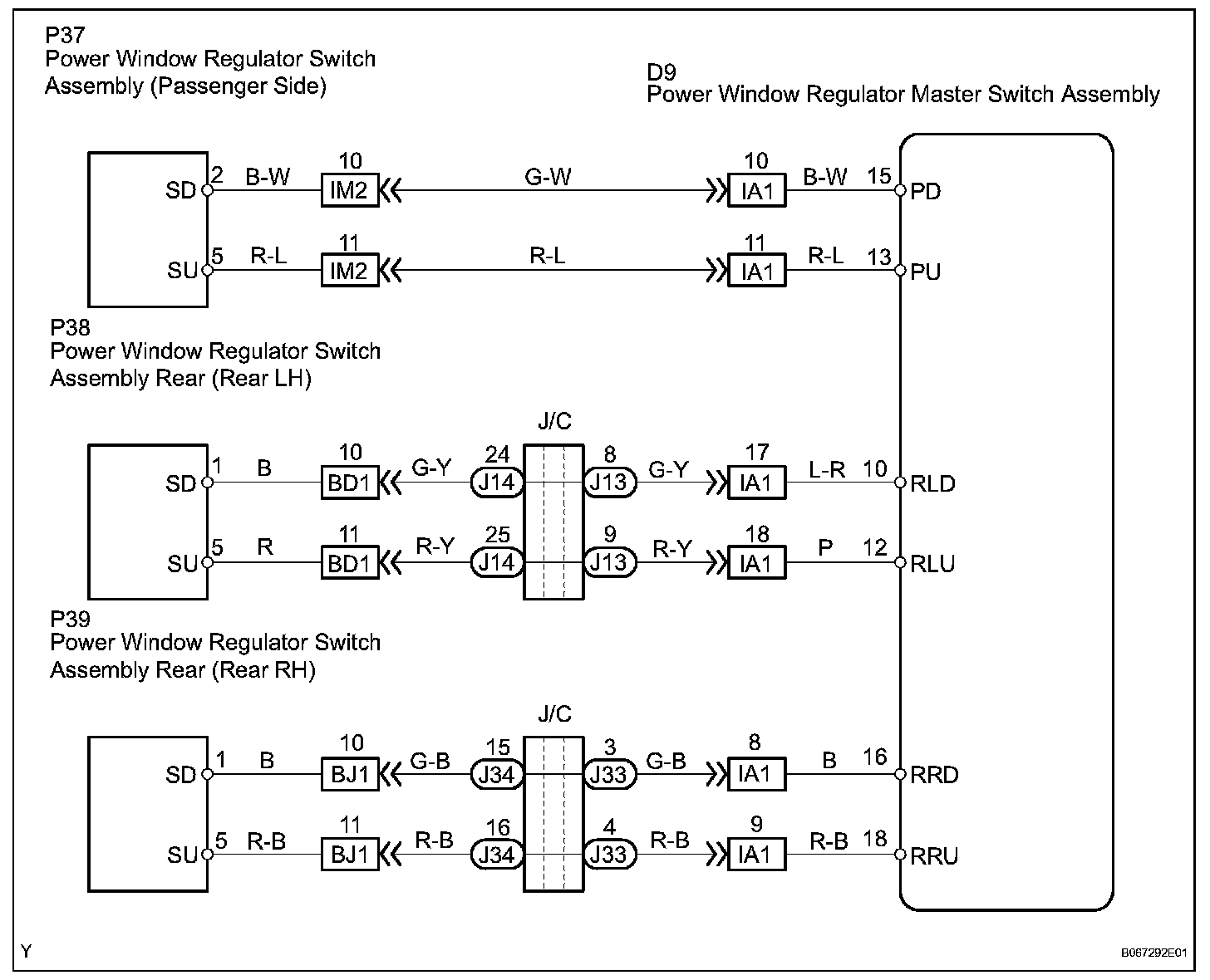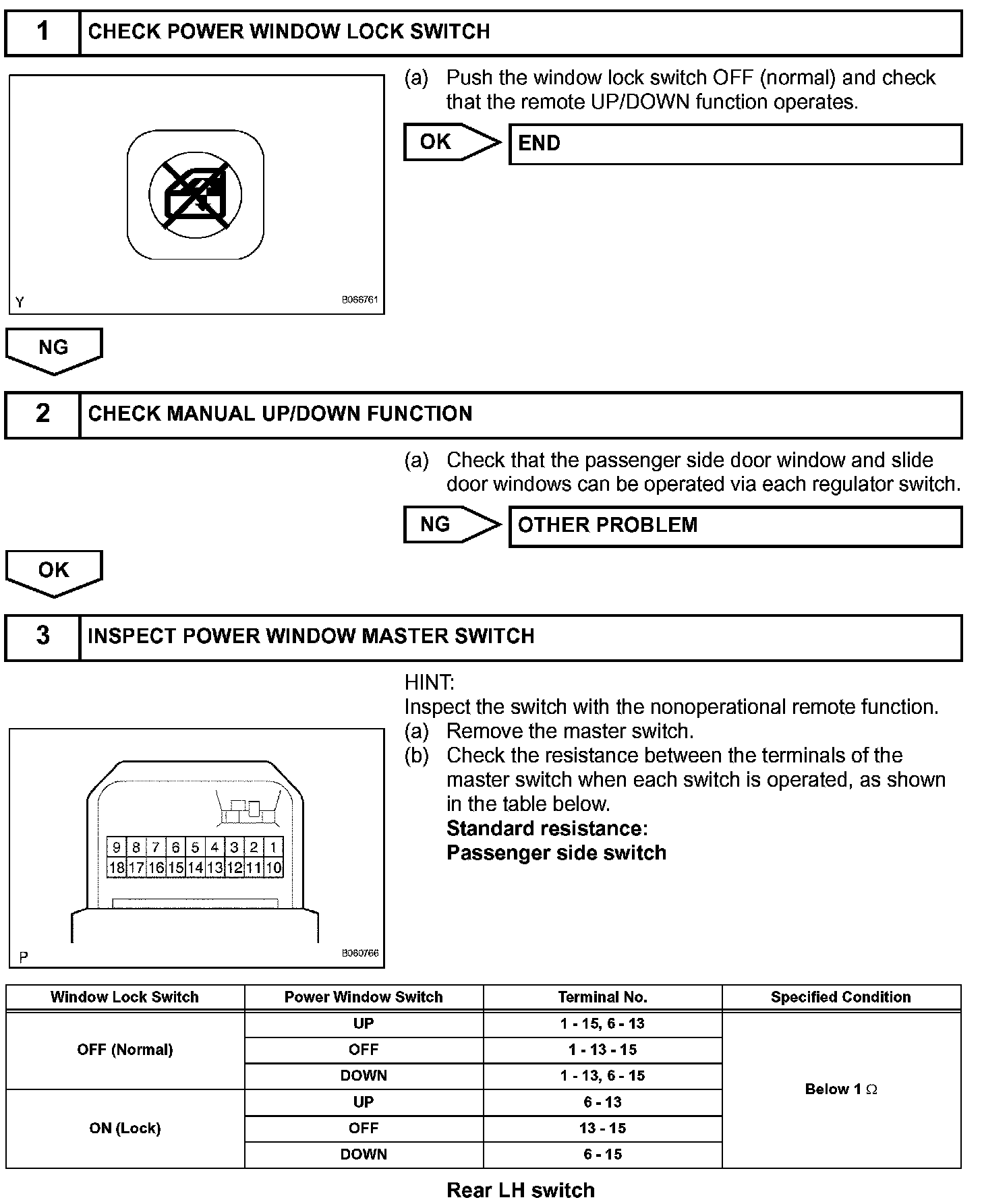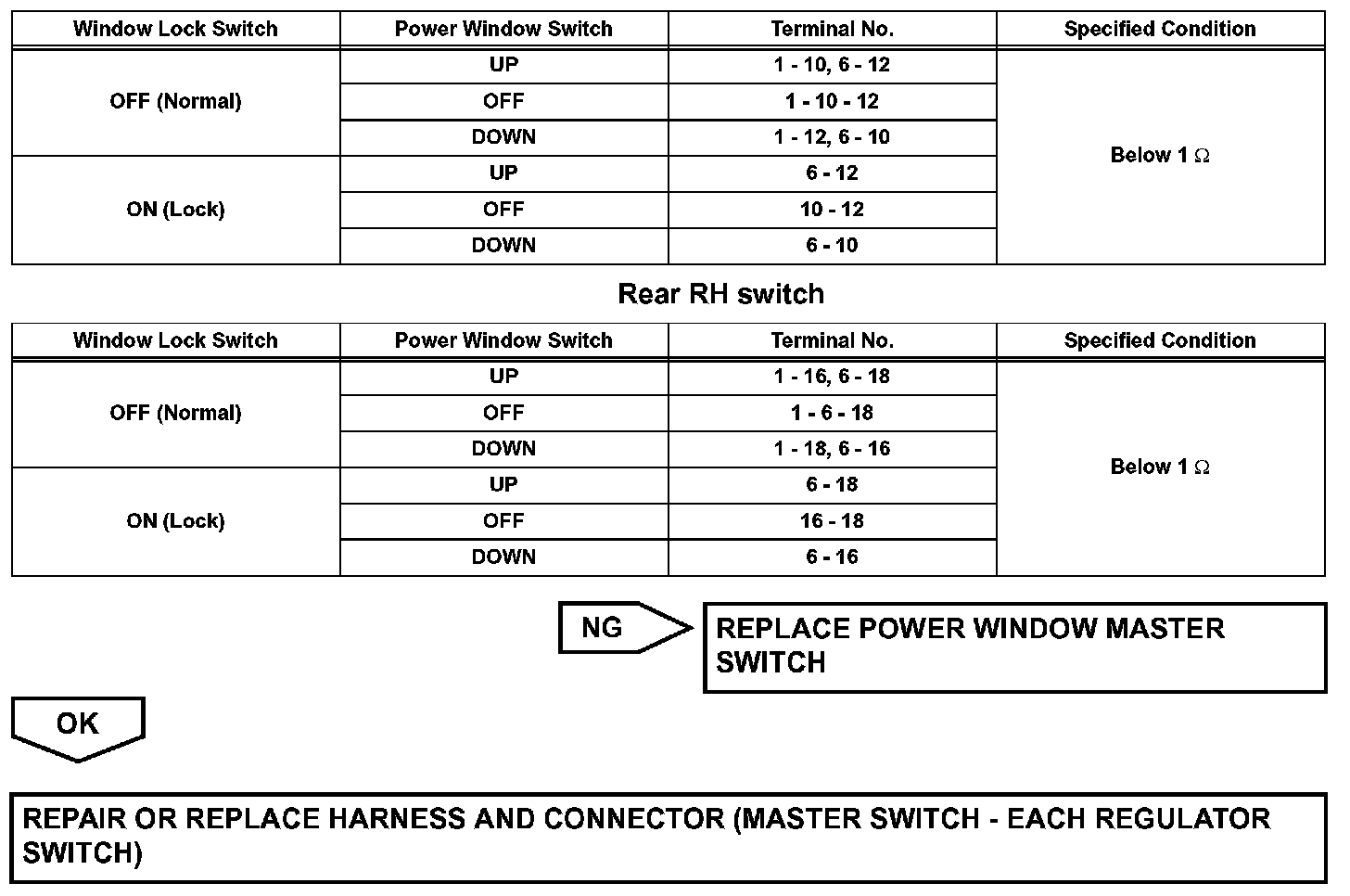 - There is an open or short circuit in the wiring between the power window master switch and the applicable power window regulator switch.