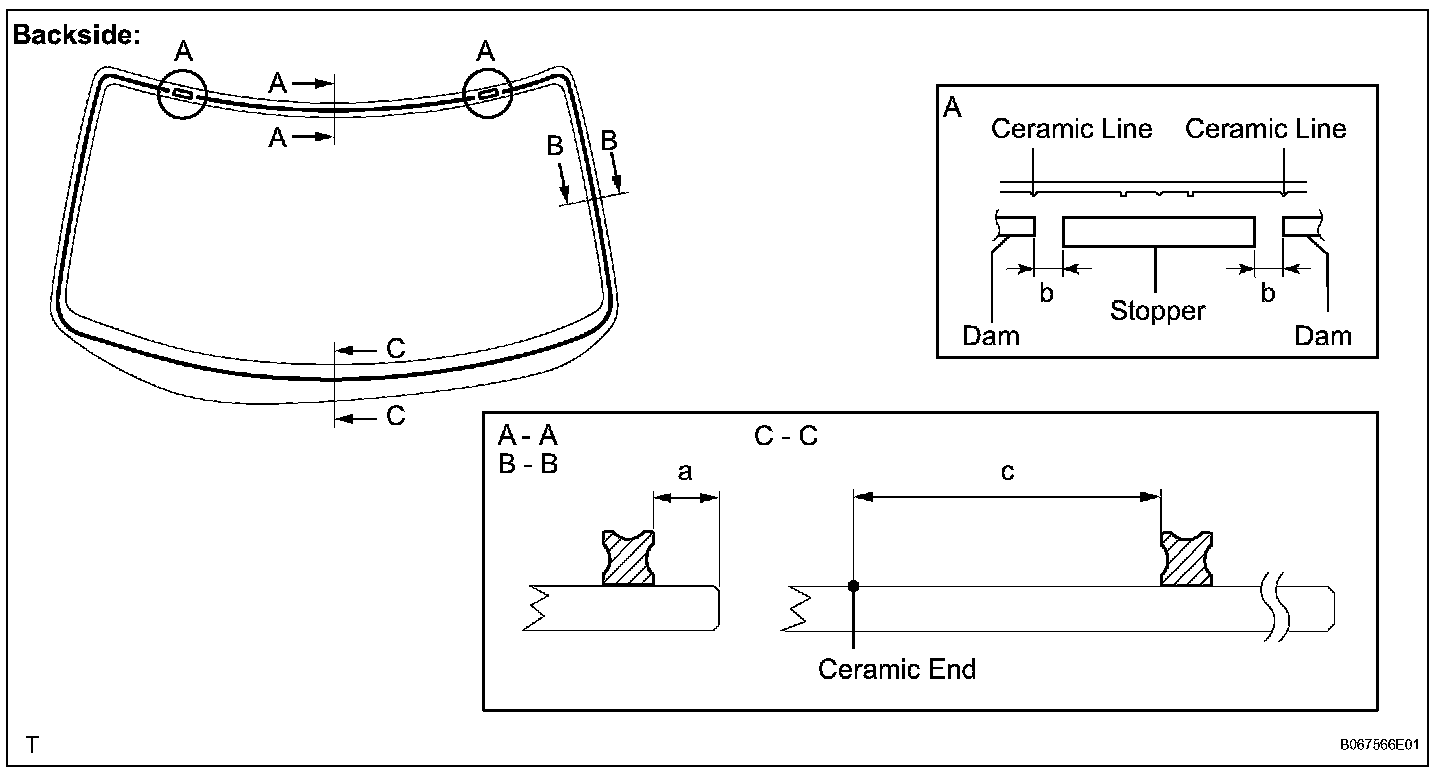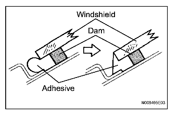 a. Coat the installation part of the windshield glass adhesive dam with Primer G.