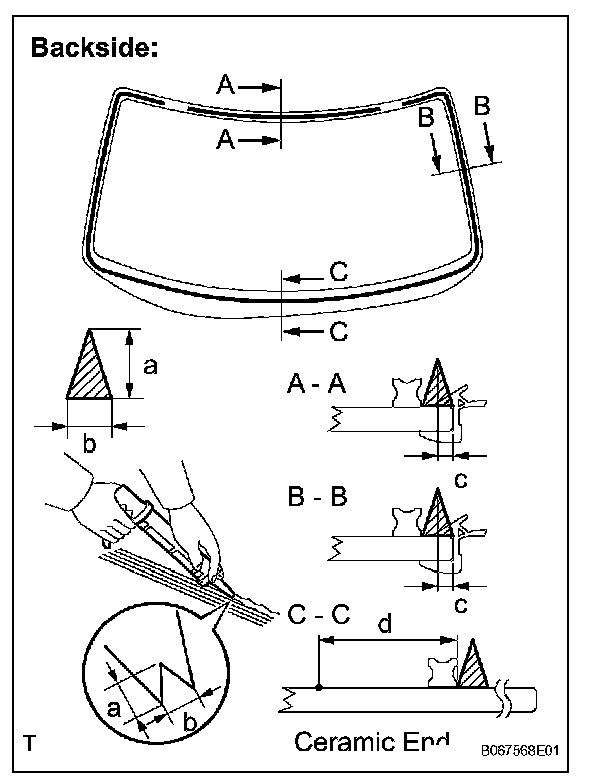 - When separating the glass from the vehicle, be careful not to damage the vehicle's paint or interior/exterior ornaments.