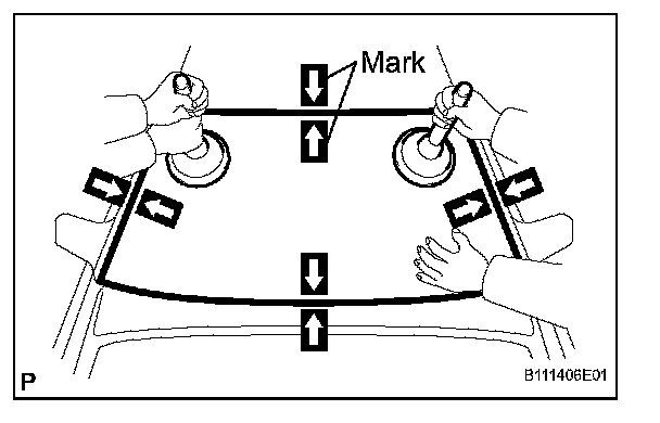 3. Place reference marks between the glass and vehicle body.