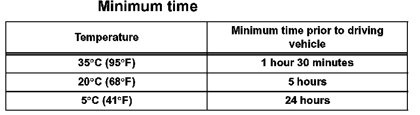 NOTE: Do not drive the vehicle for the amount of time described in the table.