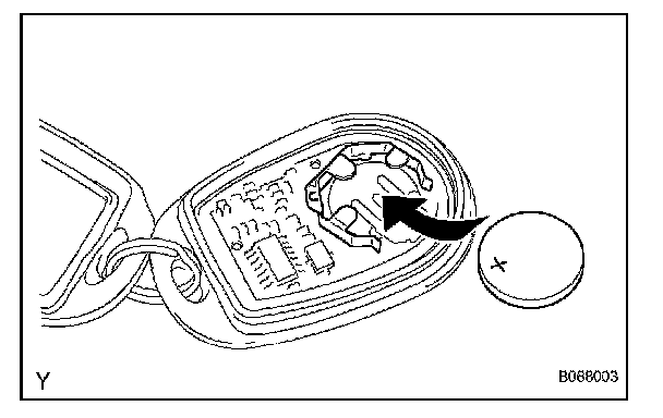 a. Install a new battery (lithium battery) with the positive (+) side up, as shown in the illustration.
