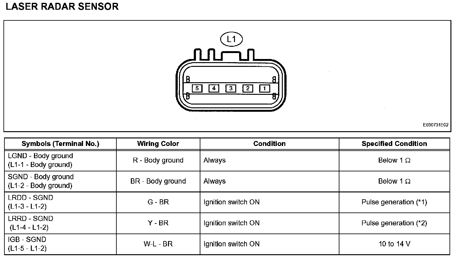 Terminals Of Control Module/Pinouts - Laser Radar Sensor: