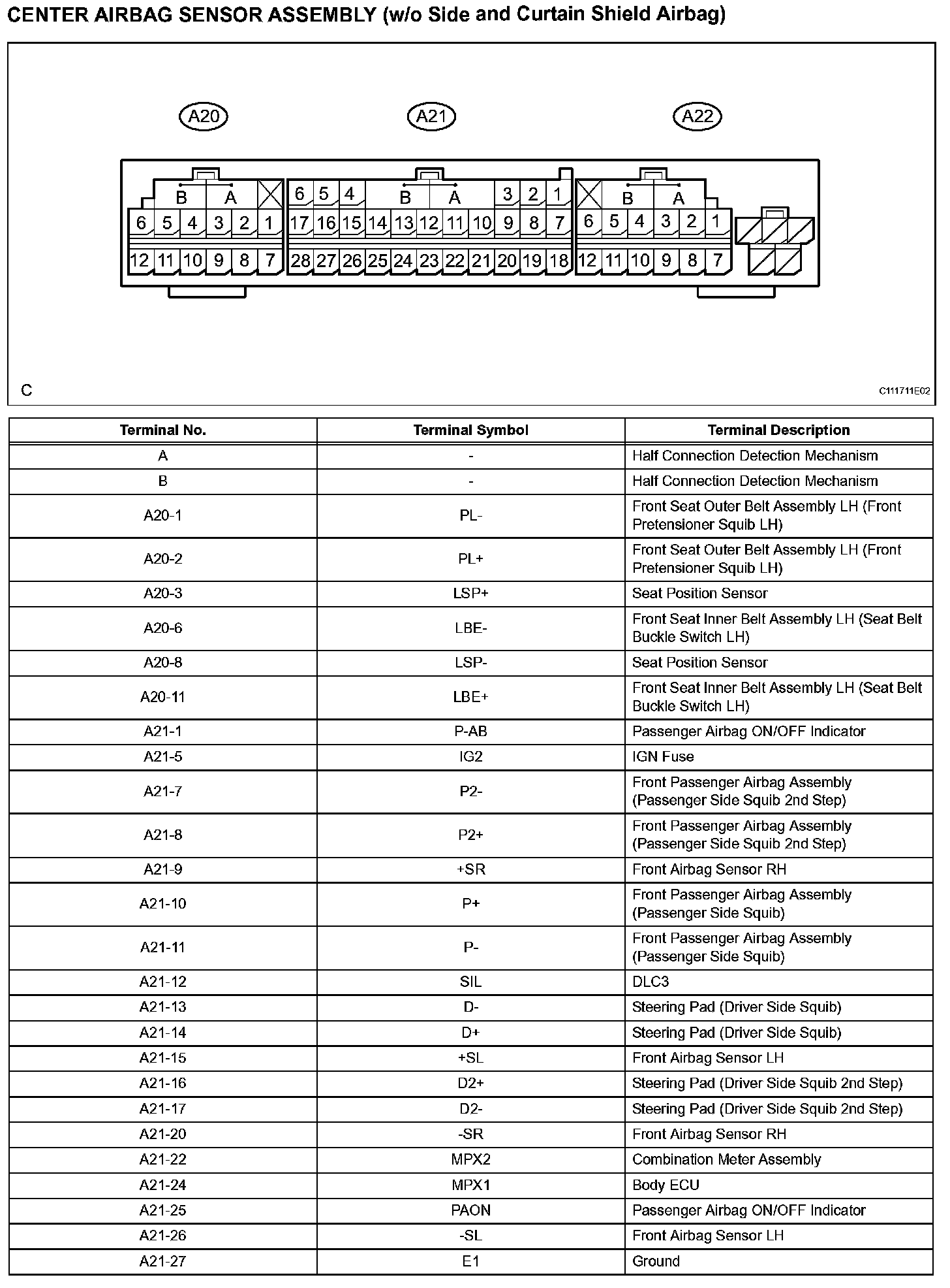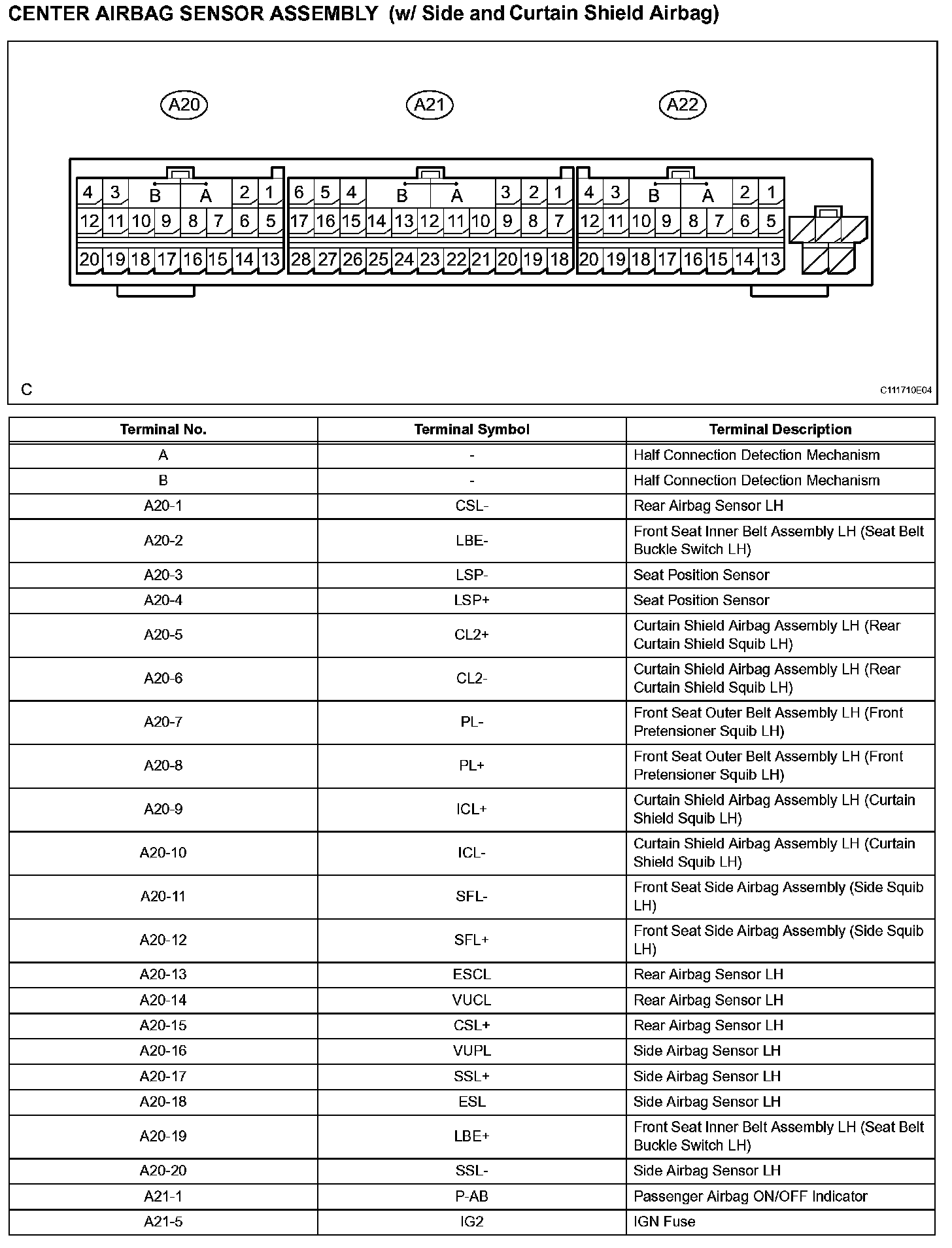 Terminals Of Control Module/Pinouts - Center Airbag Sensor Assembly (W/o Side And Curtain Shield Airbag) (Part 1):