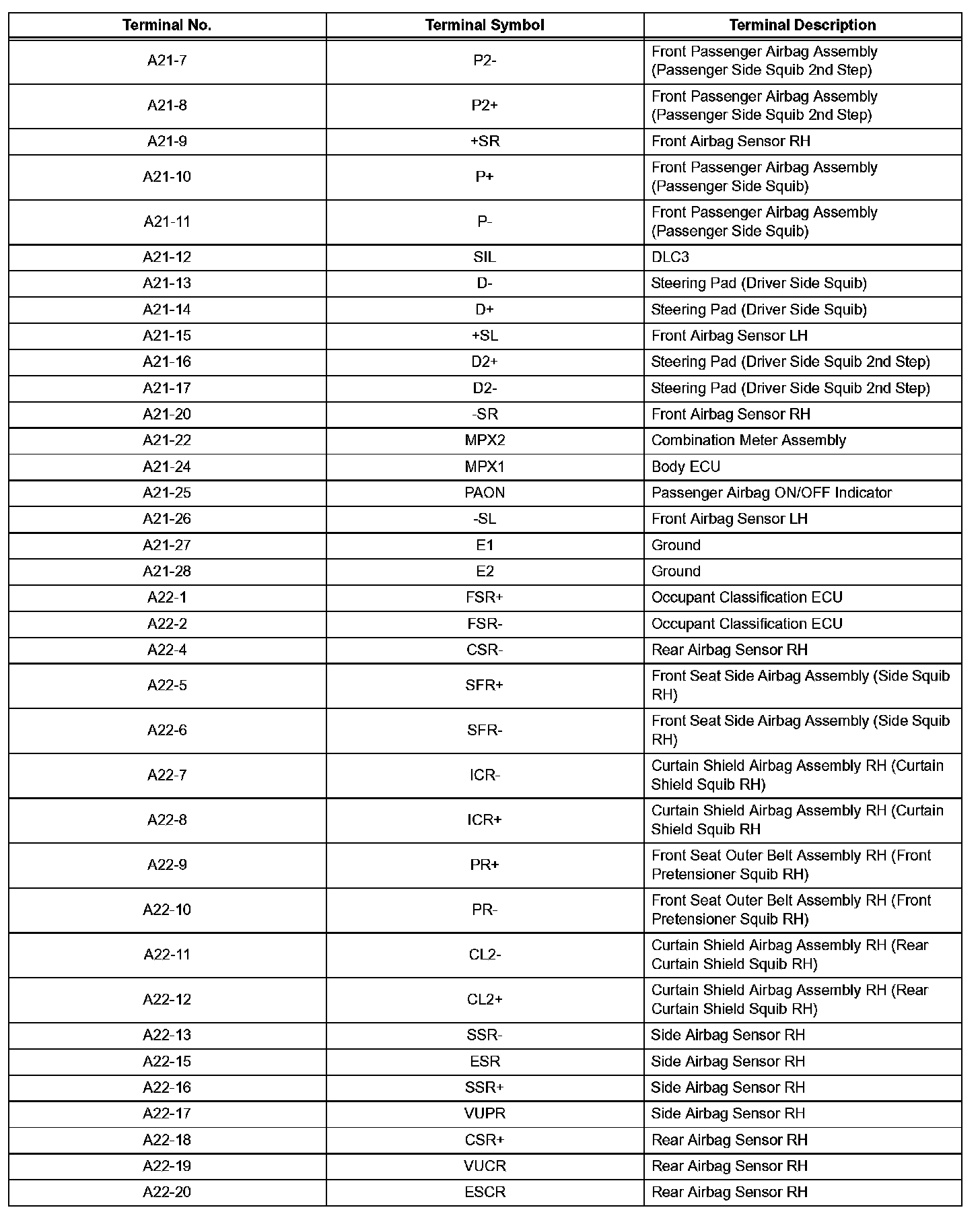 Terminals Of Control Module/Pinouts - Center Airbag Sensor Assembly (W/o Side And Curtain Shield Airbag) (Part 2):