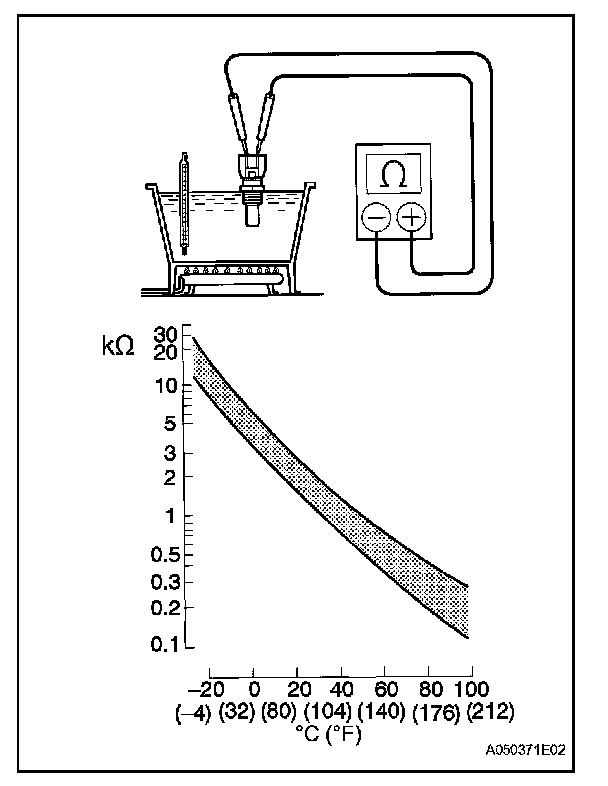NOTE: While checking the engine coolant temperature sensor in water, be careful not to allow water to go into the terminals, and after checking, dry the sensor.