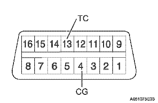 1) Using SST, connect terminals 13 (TC) and 4 (CG) of DLC 3.