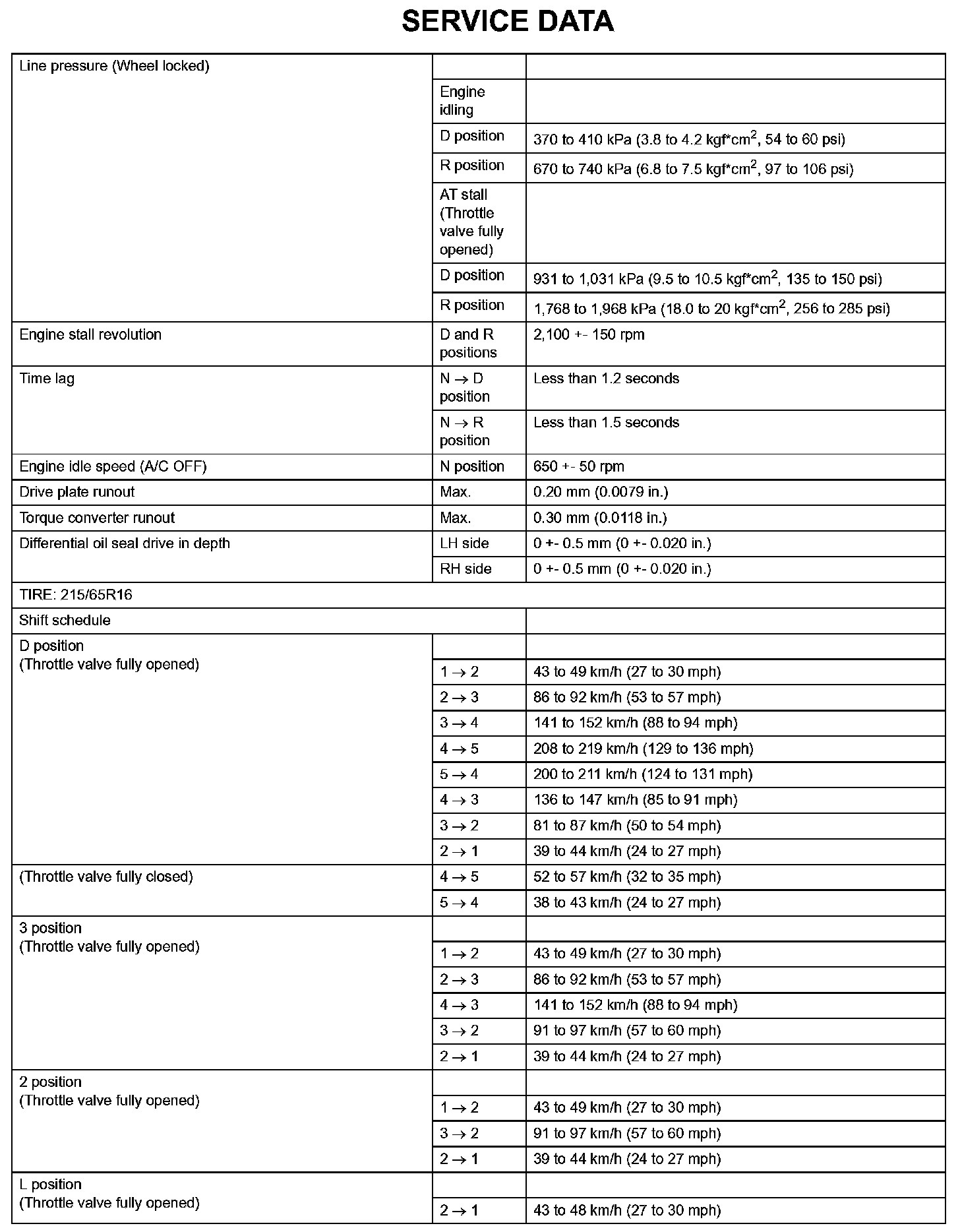 Automatic Transaxle-Service Data (Part 1):