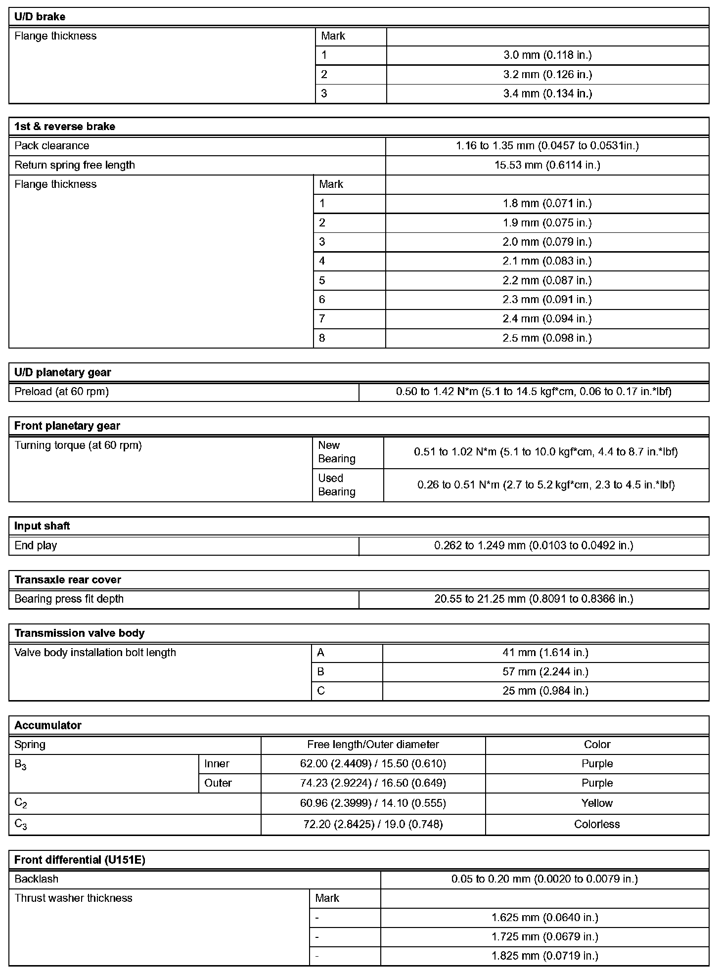 Automatic Transaxle-Service Data (Part 2):