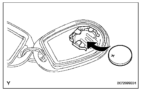 a. Install a new battery (lithium battery) with the positive (+) side up, as shown in the illustration.