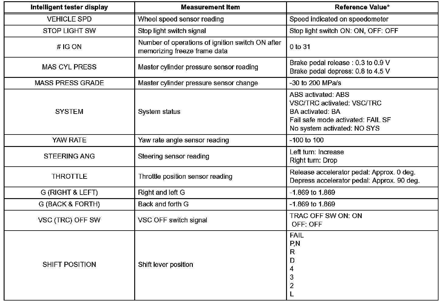 - Freeze frame data at the time the ABS operates: