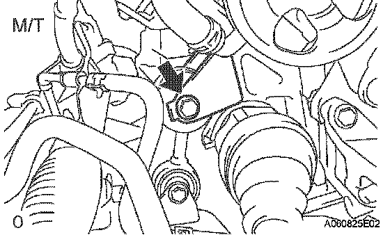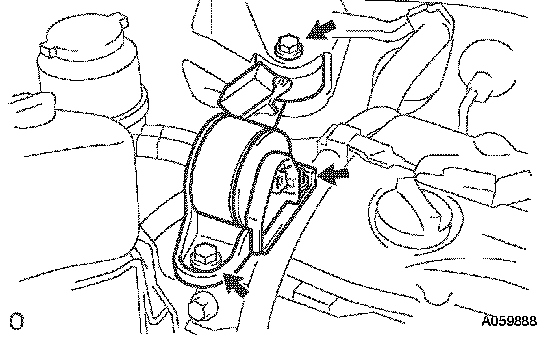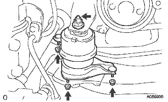b. Remove the bolt and disconnect the engine mounting insulator FR.