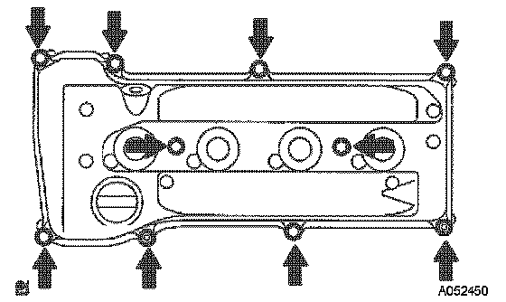 b. Apply seal packing (diameter: 2 mm (0.08 inch)) as shown in the illustration. Seal packing: Part No. 08826-00080 or equivalent