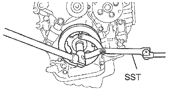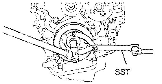 2 Using the crankshaft pulley bolt, turn the crankshaft and set the set key on the crankshaft upward.