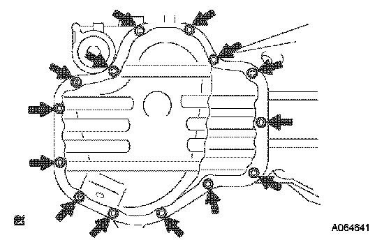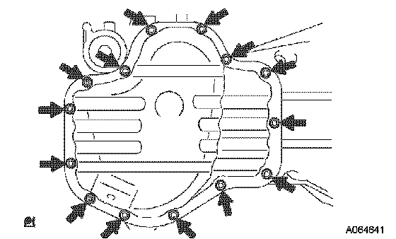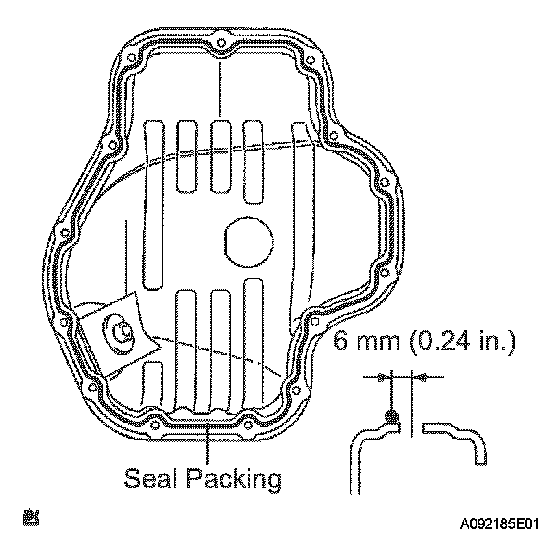 ^ Install the oil pan within 3 minutes after applying seal packing.
