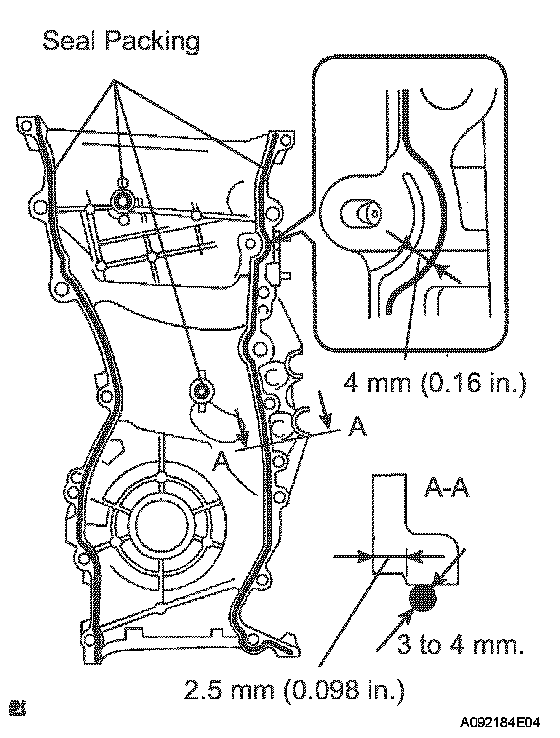 c. Apply seal packing in a continuous bead (diameter: 3 to 4 mm (0.12 to 0.16 inch)) as shown in the illustration.
