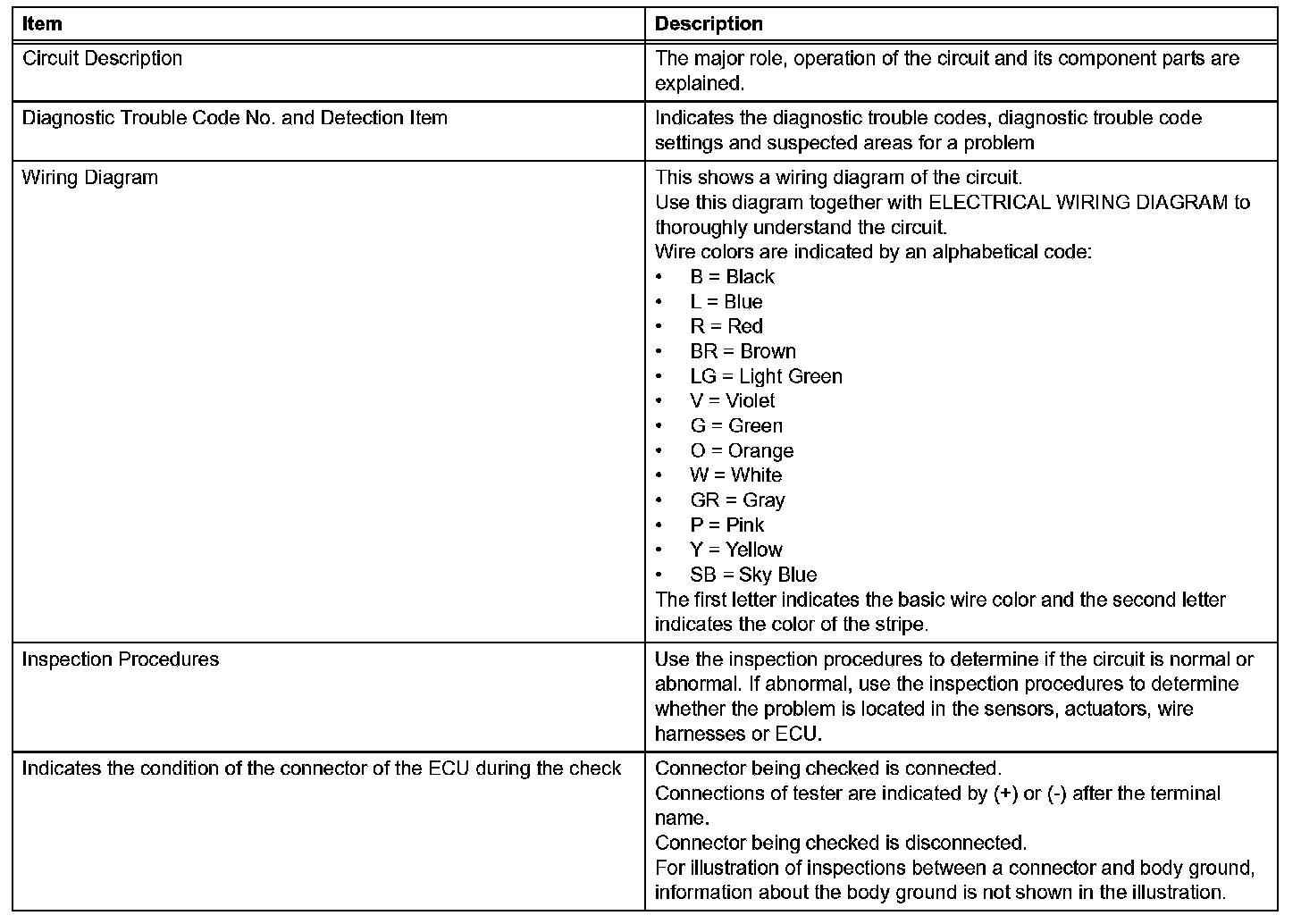 A description of the main areas of each circuit inspection is given.