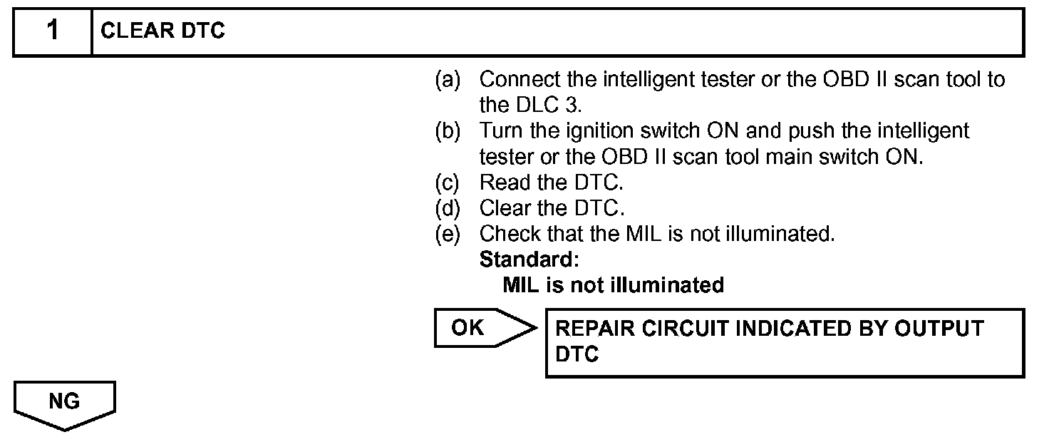 The MIL should be illuminated when the ignition switch is first turned ON. If the MIL is always ON or OFF, use the intelligent tester or OBD II scan tool and follow the procedures to determine the cause of the problem.