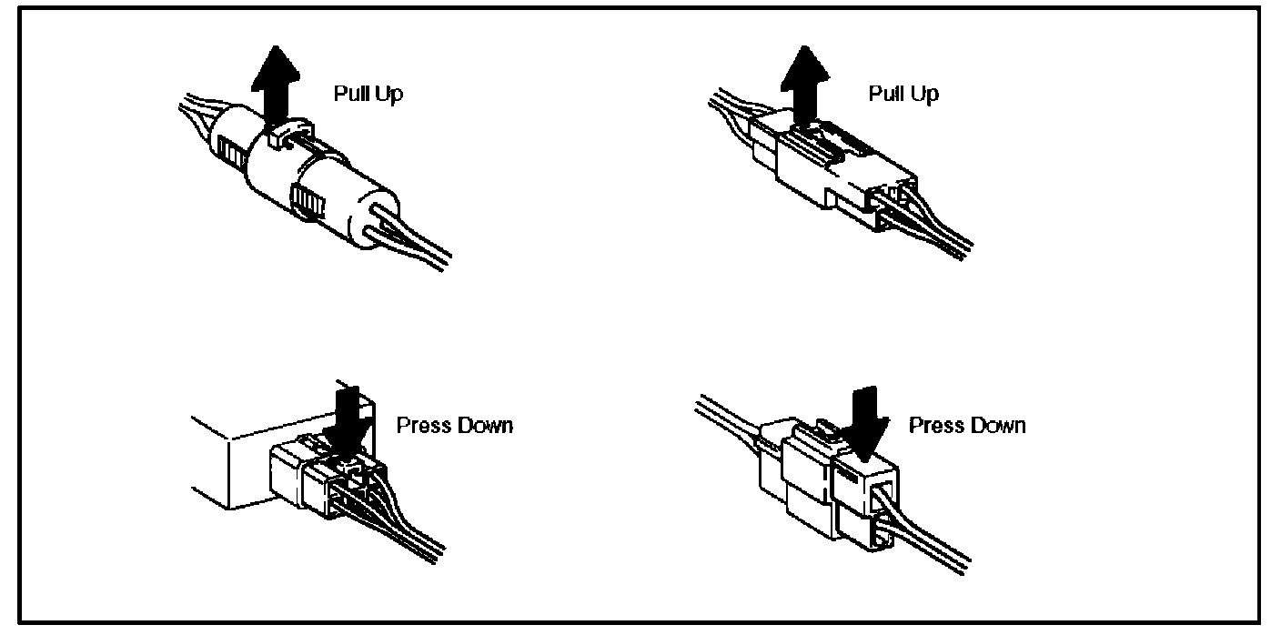 DISCONNECTION OF MALE AND FEMALE CONNECTORSTo pull apart the connectors, pull on the connector itself, not the wire harness.