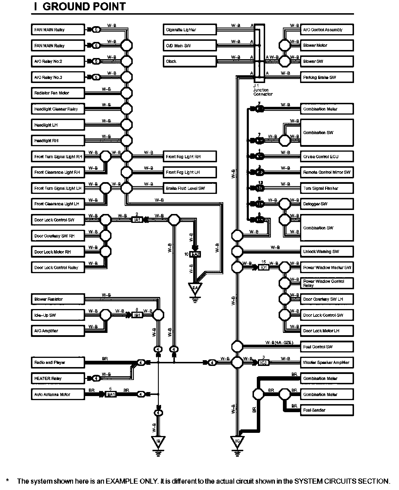 HOW TO READ GROUND POINTSThe ground points circuit diagram shows the connections from all major parts to the respective ground points Where troubleshooting a faulty ground point, checking the system circuits which use a common ground may help you identify the problem ground quickly The relationship between ground points ([EA], [IB] and [IC] shown) can also be checked this way.