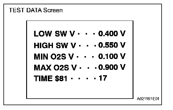 If the TEST DATA value appearing on the scan tool is out of the standard value, the O2S is malfunctioning. If it is within the standard value, the O2S is functioning normally. However, if the value is on the borderline of the standard value, the O2S may malfunction very soon.