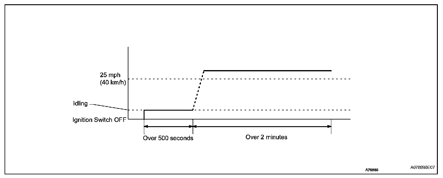 NOTE: Drive with smooth throttle operation and avoid sudden acceleration. If IAT was less than 10 degree C (50 degree F) when the engine was started, drive the vehicle at 40 to 55 mph (64 to 88 km/h) for an additional 4 minutes.