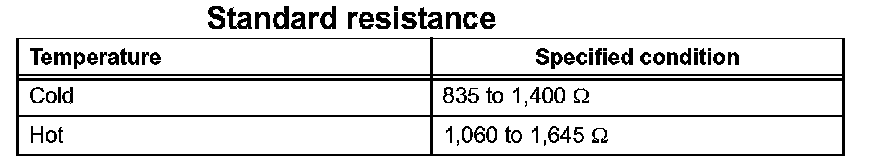 ON-VEHICLE INSPECTIONNOTE: In the following section, the terms "cold" and "hot" refer to the temperature of the coils. "Cold" means approximately -10 degree C (14 degree F) to 50 degree C (122 degree F). "Hot" means approximately 50 degree C (122 degree F) to 100 degree C (212 degree F).