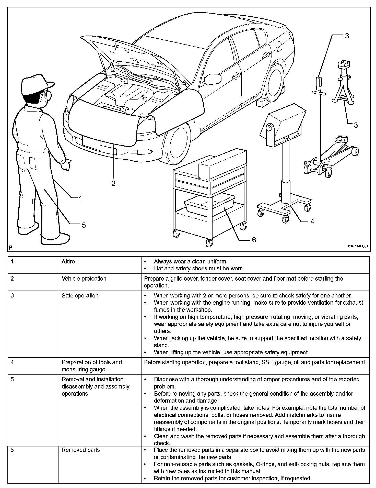 1. Care must be taken when jacking up and supporting the vehicle. Be sure to lift and support the vehicle at the proper locations.