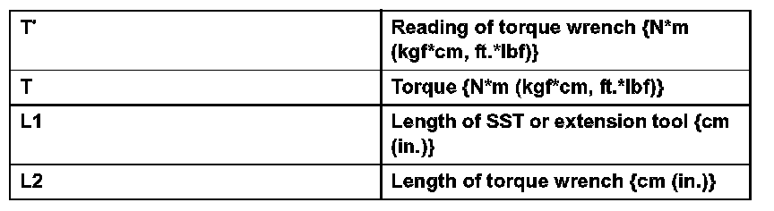 1. Use the formula below to calculate special torque values for situations where SST or an extension tool is combined with the torque wrench.