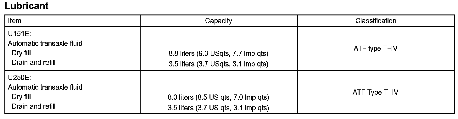 Notice: Using automatic transmission fluid other than "Toyota Genuine ATF Type T-IV" may cause deterioration in shift quality, locking up of your transmission accompanied by vibration, and ultimately damage the automatic transmission of your vehicle.