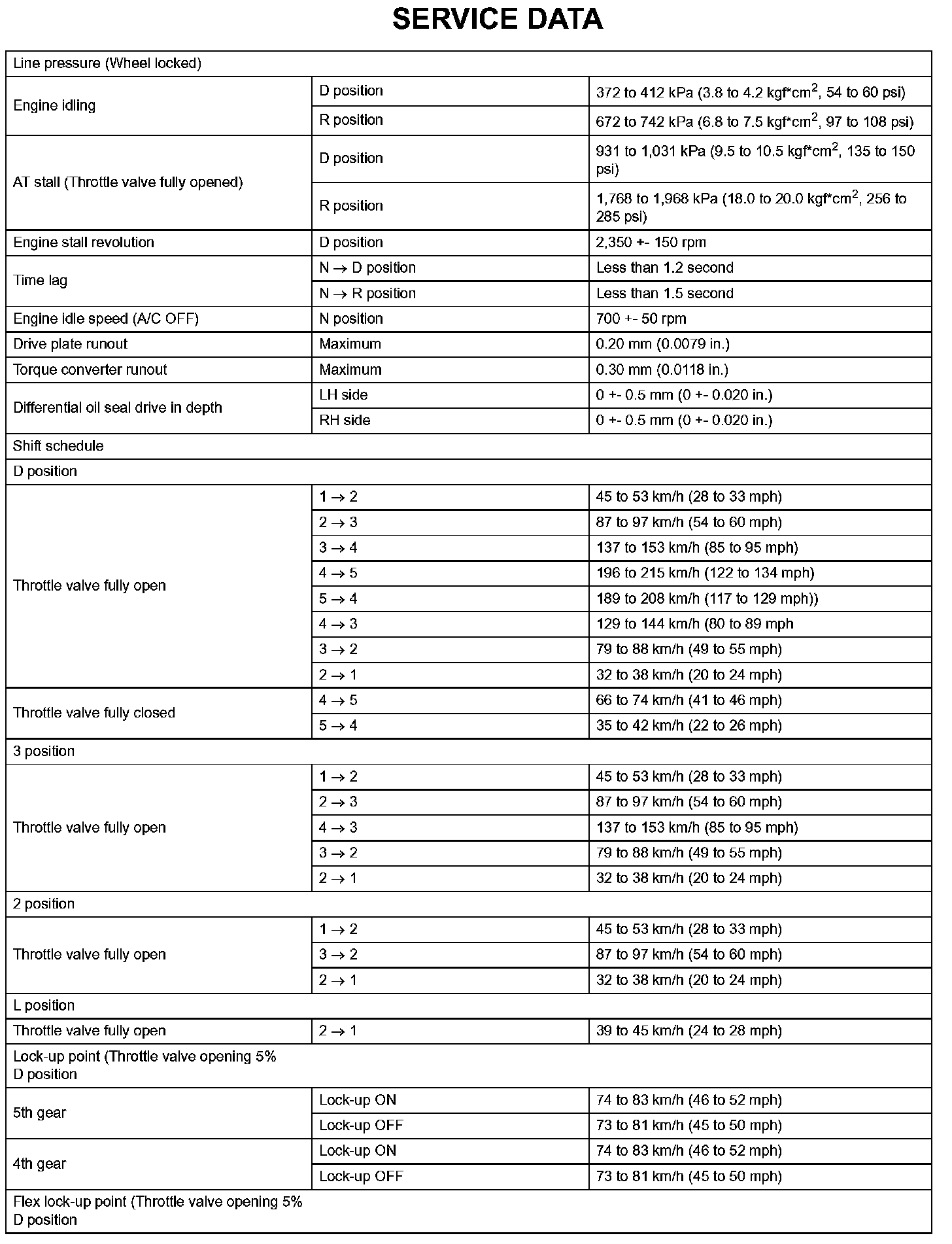 Automatic Transaxle-Service Data (Part 1):