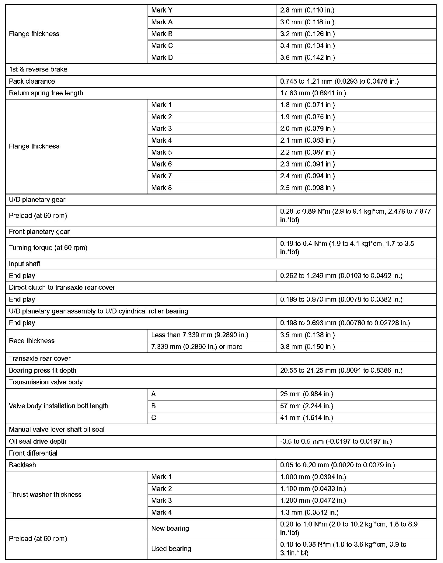 Automatic Transaxle-Service Data (Part 2):
