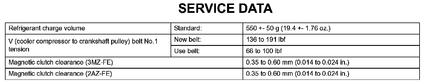 Air Conditioning-Service Data: