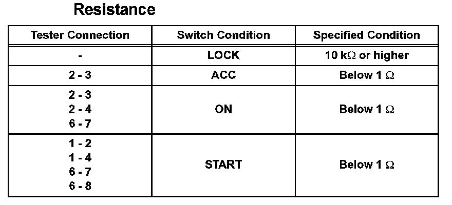 INSPECT IGNITION OR STARTER SWITCH ASSEMBLY