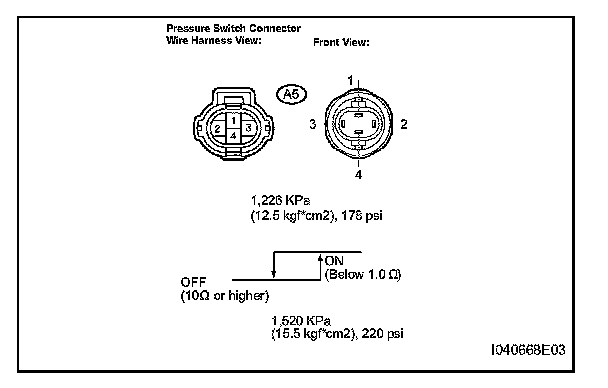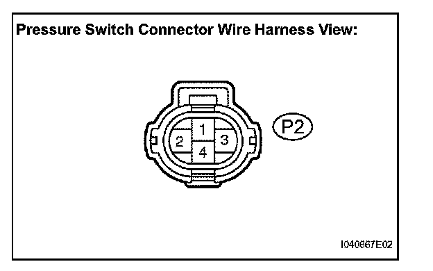 b. Disconnect the pressure switch connector and connect terminals 1 and 4 using a tool such as a service wire.