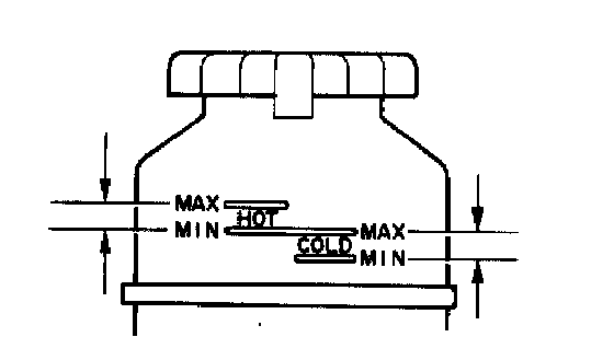 HINT: When hot, check that the fluid level is within the HOT LEVEL range on the oil reservoir. If the fluid is cold, check that it is within the COLD LEVEL range.