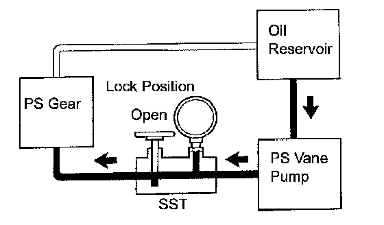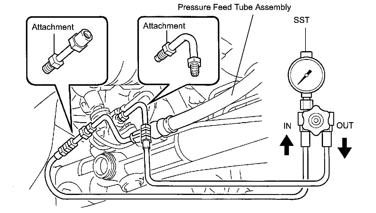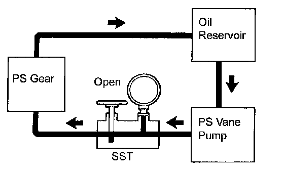 f. With the engine idling, close the valve of the SST and observe the reading on the SST
